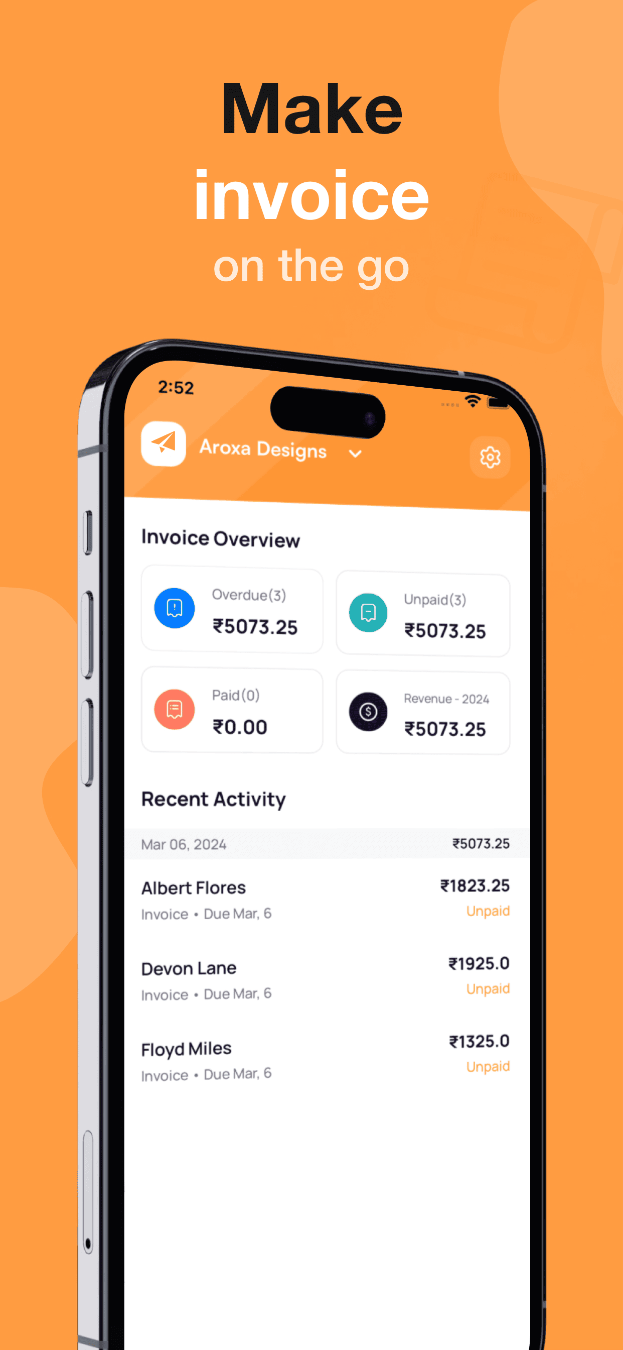 Send invoices directly to your clients via email or messaging apps and keep track of their status. Get notifications when they’re viewed or paid, so you always know where you stand.