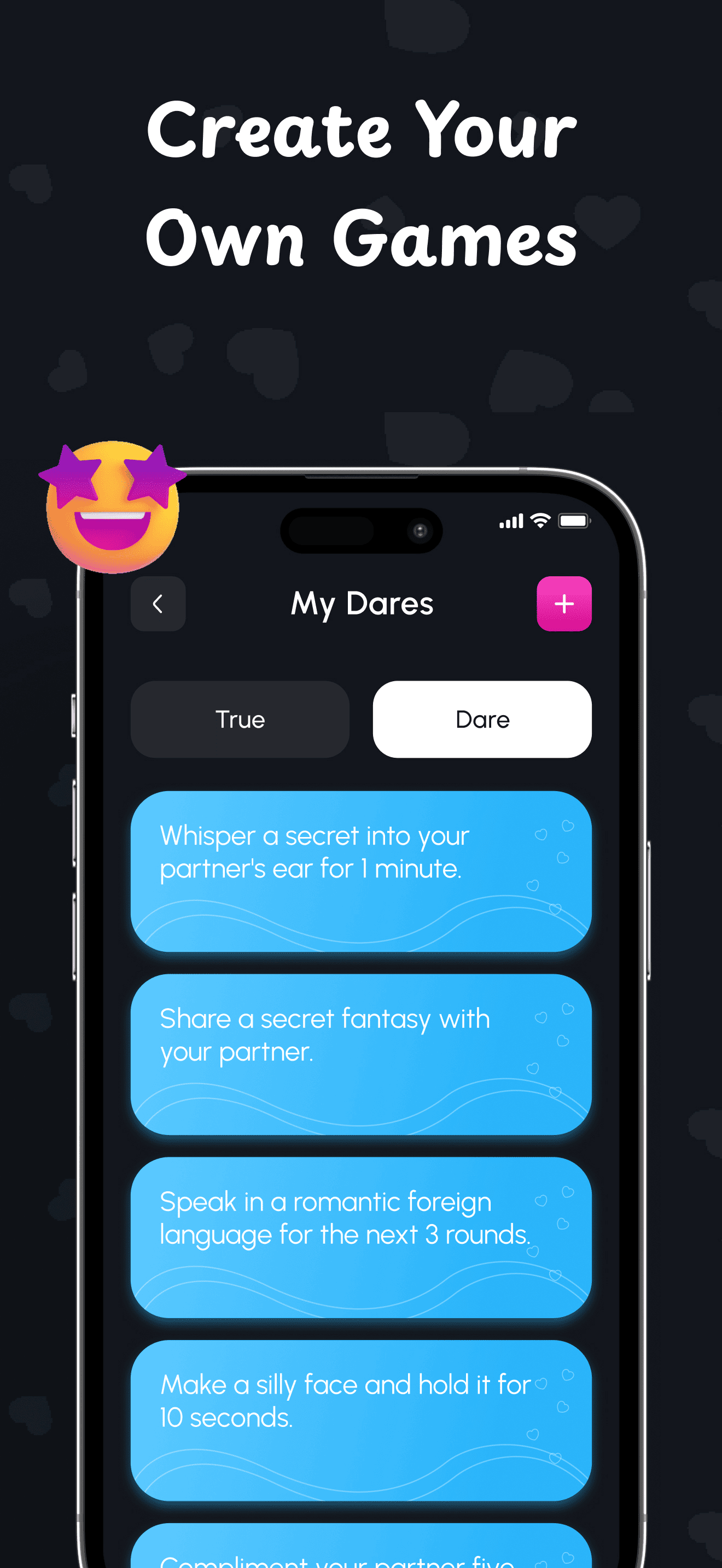 Custom Questions & Dares: You can add your questions or dares to make it more intimate and full of things that turn both of you on.